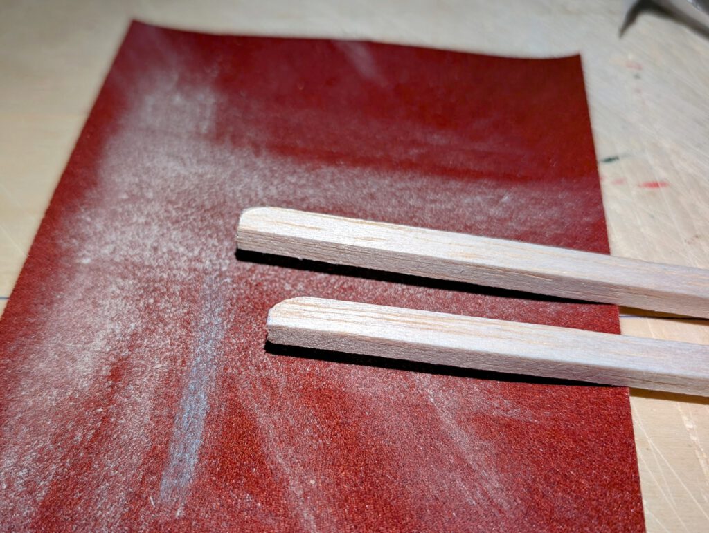 Cut out balsa parts according to plan. Sand meticulously. Make colouring now, if desired.