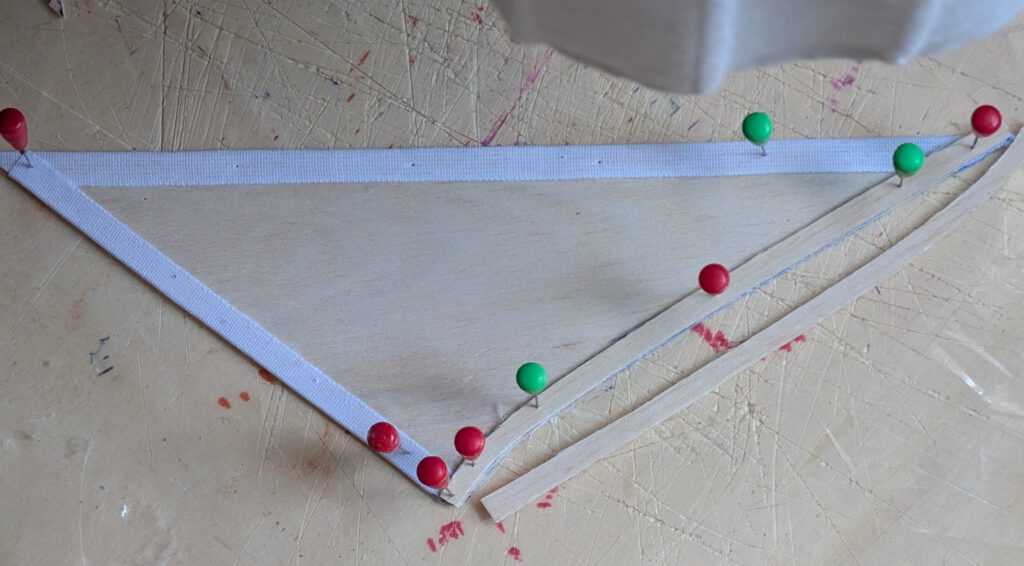 Fuselage: B 3; wings: B 1; wing supports: B 3 x 3; fin: B1; fin base doublers: B1; linen/cotton band width ½ in = 12 mm; ballast: piece of steel or lead.