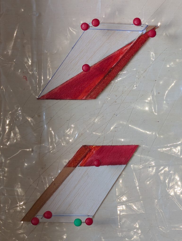 Strengthen leading edges of both wing halves with linen band as shown on plan.