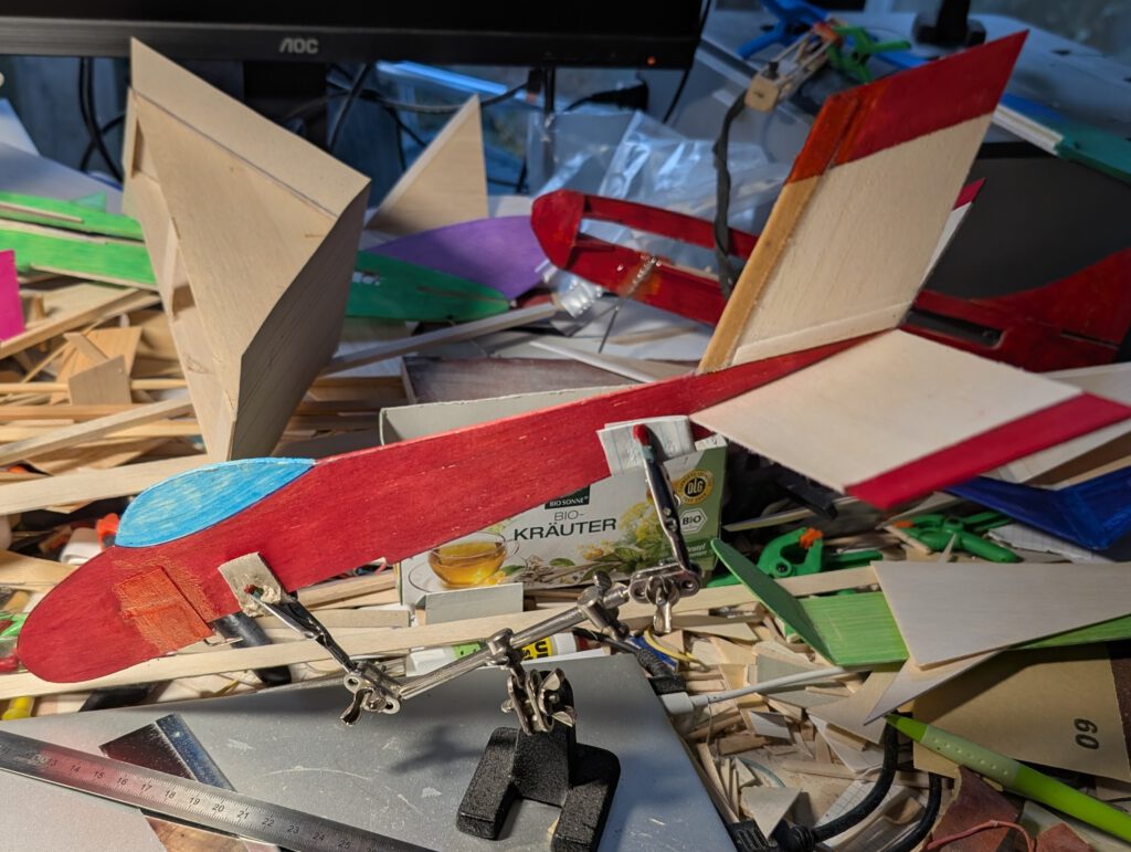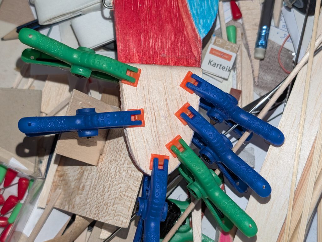 Fins should generally be cemented with acrylic glue on fuselages and hardwood “teeth”between fuselage and fin are one more option to ensure a durable and strong connection.