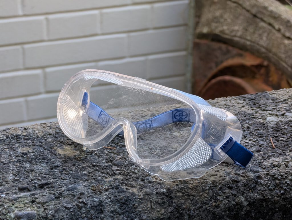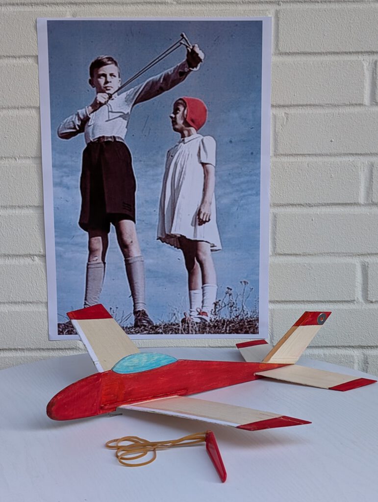 Why not put on glasses when you fly your model as a rubber sling can produce massive energy.