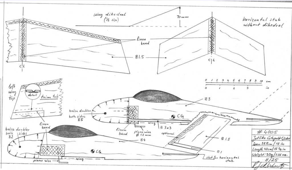 Building the sheet balsa Jetlike Catapult glider.